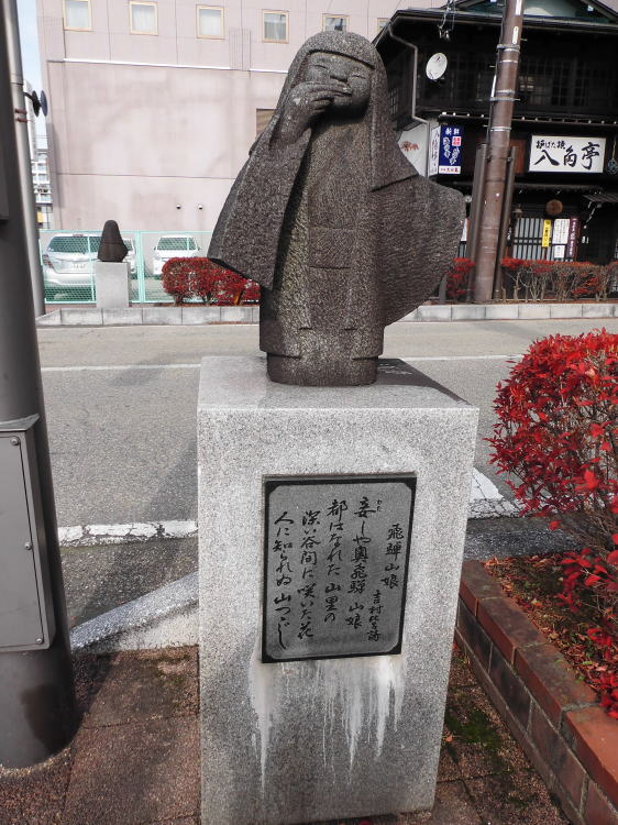 【岐阜県高山市花里町4-108及び5-19 高山駅南交差点 横断歩道脇にある 飛騨山娘 歌碑】